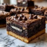 Keywords: Slutty Brownies, layered brownies, cookie dough brownies, Oreo brownies, chocolate dessert, baked treat