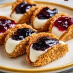 - Add Toppings and Serve: Top each cheesecake taco with generous spoonfuls of blueberry and strawberry jam. Serve immediately to enjoy the perfect contrast of textures and flavors.