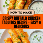 Buffalo Chicken Taquitos are a crispy, flavorful snack or meal that packs a spicy punch. These easy-to-make taquitos combine tender shredded chicken with zesty buffalo sauce and melted cheddar cheese, all wrapped in warm tortillas for a satisfying bite.