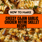 Keywords: Cheesy Cajun Chicken, Garlic Chicken Pasta, Rotini Skillet, One-Pan Chicken Dinner, Cajun Pasta, Creamy Chicken Pasta
