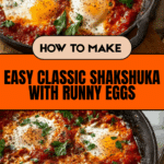 Classic Shakshuka is a vibrant and hearty Middle Eastern dish featuring poached eggs in a rich, spiced tomato and bell pepper sauce. This one-pan meal is perfect for breakfast, brunch, or a light dinner, offering a delightful combination of flavors with cumin, paprika, and a hint of chili heat, garnished with fresh herbs and served with warm bread for scooping.