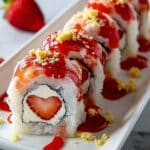 This creative and adorable Strawberry Shortcake Sushi Roll Dessert combines the classic flavors of strawberry shortcake with a fun sushi-inspired presentation. A light sponge cake is layered with a creamy strawberry-infused filling, rolled into a log, chilled, sliced, and beautifully garnished, making it a delightful treat for any occasion.