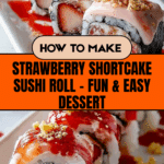Keywords: Strawberry shortcake, sushi roll dessert, cream cheese filling, no-bake dessert, fruity dessert, cute food presentation