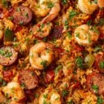 This Easy Jambalaya recipe offers a flavorful one-pot meal combining smoked andouille sausage, fresh vegetables, aromatic spices, and succulent shrimp cooked with basmati rice in a rich tomato and chicken broth base. A classic Creole dish that’s simple to prepare and perfect for a comforting dinner.