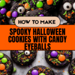 These Halloween Cookies are a festive treat perfect for the spooky season. Made with a rich blend of black cocoa powder and classic cookie ingredients, they’re studded with Halloween-themed M&M’s, jimmies, and candy eyeballs for a fun, colorful twist. Crispy on the edges and soft in the center, these cookies are ideal for holiday parties or trick-or-treaters looking for something delicious and visually entertaining.