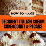 Italian Cream Cake is a moist, flavorful dessert featuring tender layers studded with coconut and toasted pecans. Topped with a rich cream cheese frosting and more toasted nuts, this cake is perfect for celebrations or any time you crave a special treat.