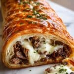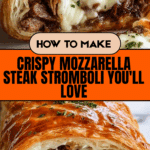 This mouthwatering Mozzarella Cheese Steak Stromboli combines tender steak, sautéed vegetables, and gooey mozzarella baked inside a golden, crispy crust. Perfect for a comforting dinner or a crowd-pleasing appetizer, it’s easy to make and packed with rich, savory flavors.