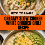 Keywords: white chicken chili, slow cooker chili, creamy chili, white bean chili, comfort food, crockpot recipes, easy chicken chili