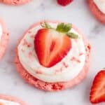 Keywords: strawberry cheesecake cookies, cream cheese frosting, fruit cookies, strawberry dessert, soft cookies