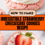 These Strawberry Cheesecake Cookies are soft, flavorful treats combining the fruity sweetness of strawberries with the creamy richness of cheesecake frosting. Made with strawberry cake mix and fresh strawberries, topped with a smooth cream cheese frosting and cookie crumbs, they are perfect for dessert or a special snack.