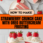 This Strawberry Crunch Cake is a delightful layered dessert featuring a moist strawberry-flavored cake made with strawberry gelatin and golden Oreos, frosted with a smooth and creamy buttercream, and finished with a crunchy strawberry Oreo topping. Perfect for celebrations or anytime you crave a fruity, crunchy, and creamy treat.