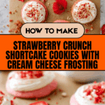 Delight in these Strawberry Crunch Shortcake Cookies featuring soft strawberry cake cookies topped with a fluffy cream cheese frosting and a homemade crunchy strawberry crumble. This dessert offers a perfect balance of moist cake, creamy frosting, and a sweet, crispy topping that adds a delightful texture and burst of strawberry flavor.