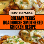 Texas Roadhouse Smothered Chicken with Jack Cheese is a comforting dish featuring juicy chicken breasts smothered in a rich, creamy garlic sauce and melted cheese. It’s easy to prepare and perfect for a satisfying weeknight dinner.