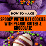 Witch Hat Cookies are a fun and festive treat perfect for Halloween celebrations. These peanut butter cookies are tinted purple and topped with chocolate kisses to resemble spooky witch hats. They’re easy to make and sure to delight both kids and adults alike.